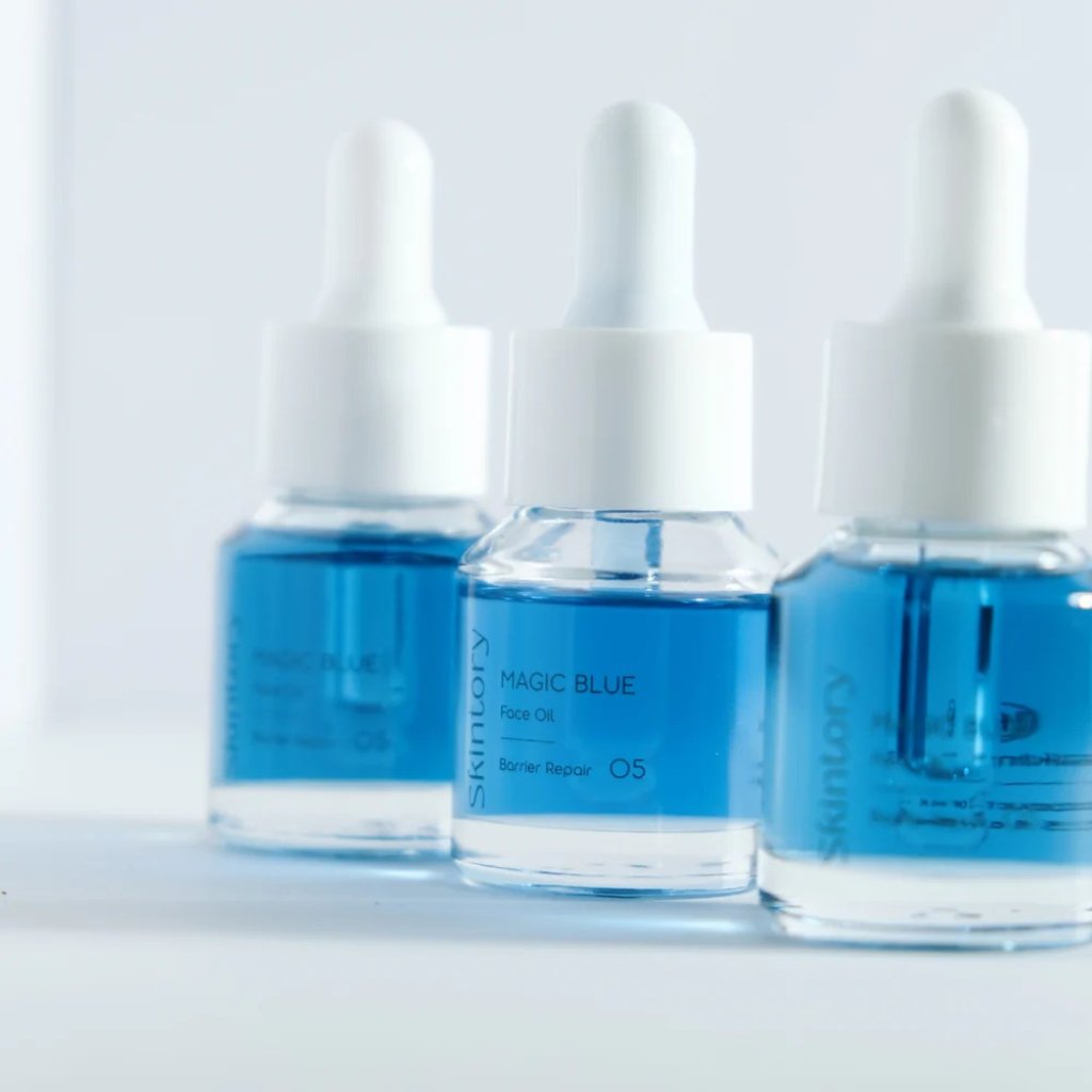 Magic Blue 藍艾菊角質養護油含有珍貴的天藍烴,所以呈現如大海般湛藍,可以幫助調理皮膚,對抗皮膚過敏、發炎等問題。在處理神經性皮膚炎時具有很好的舒緩效果,能預防痤瘡與濕疹,並緩解頭皮發癢和脂漏性皮膚炎。