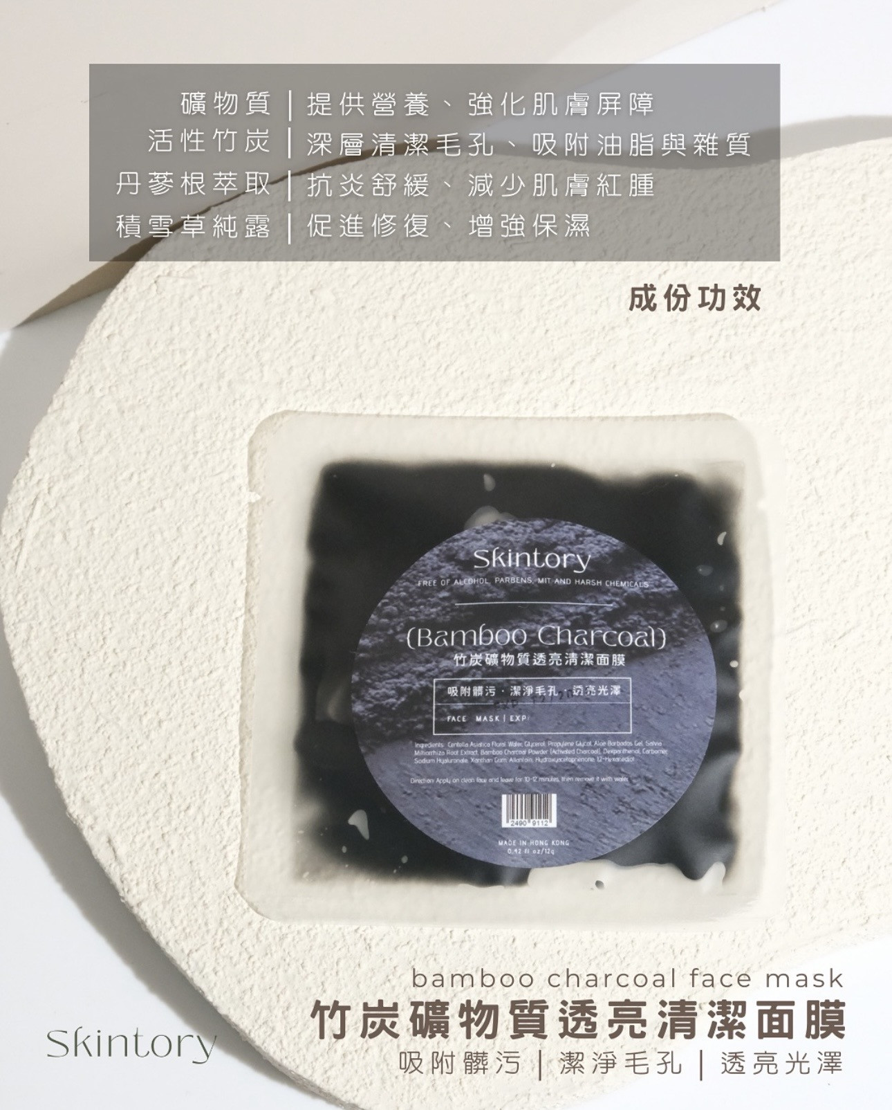 竹炭深層清潔面膜採用了純天然的活性碳成分,活性成分包括大溪地黑火山砂,能溫和去除角質,令肌膚變得更柔軟同時散發亮麗光采,有效去除肌膚上的污垢和雜質,深層淨膚,淨化毛孔,減少臉部瑕疵,使膚色均勻;