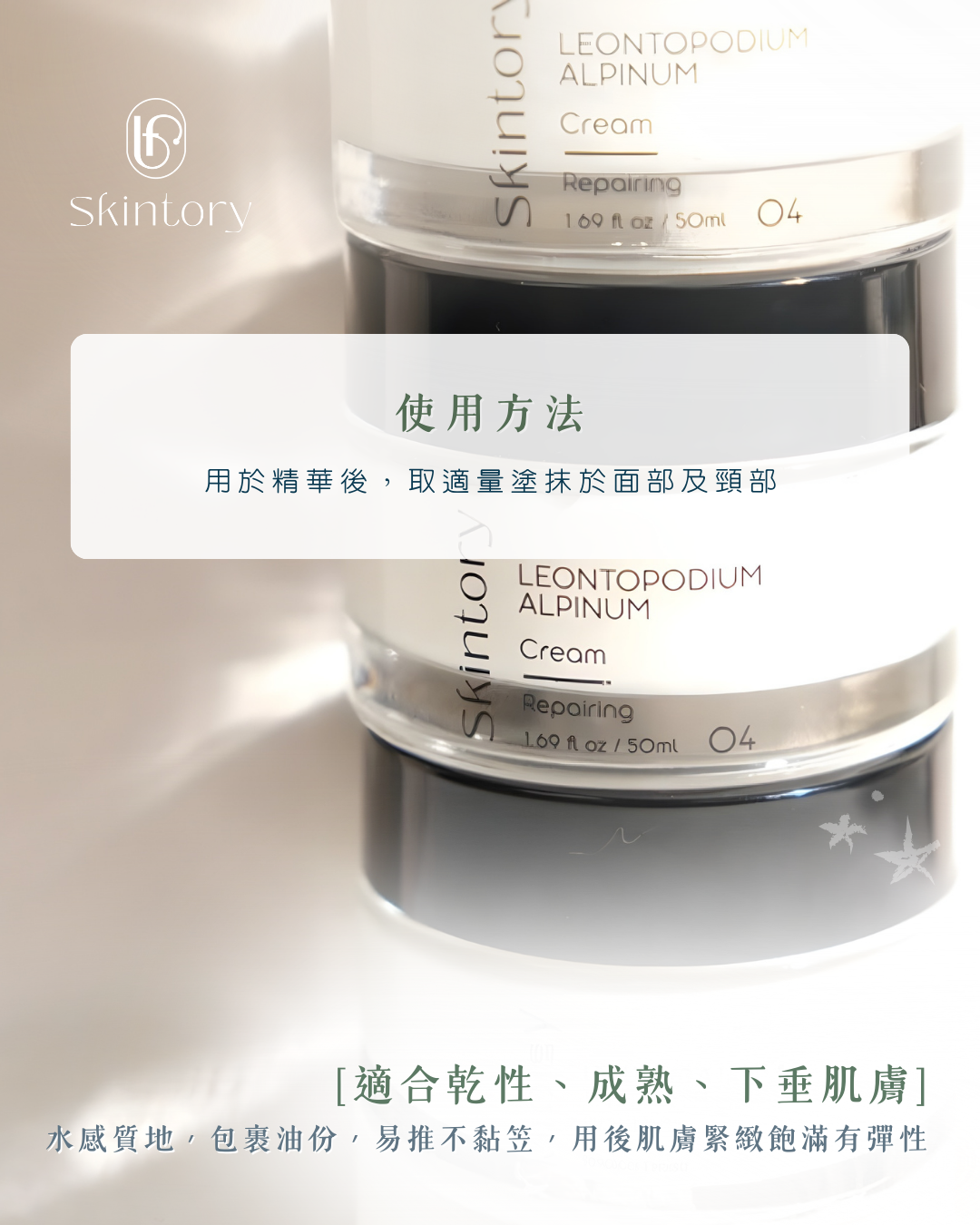 - 乾性、成熟、下垂肌膚