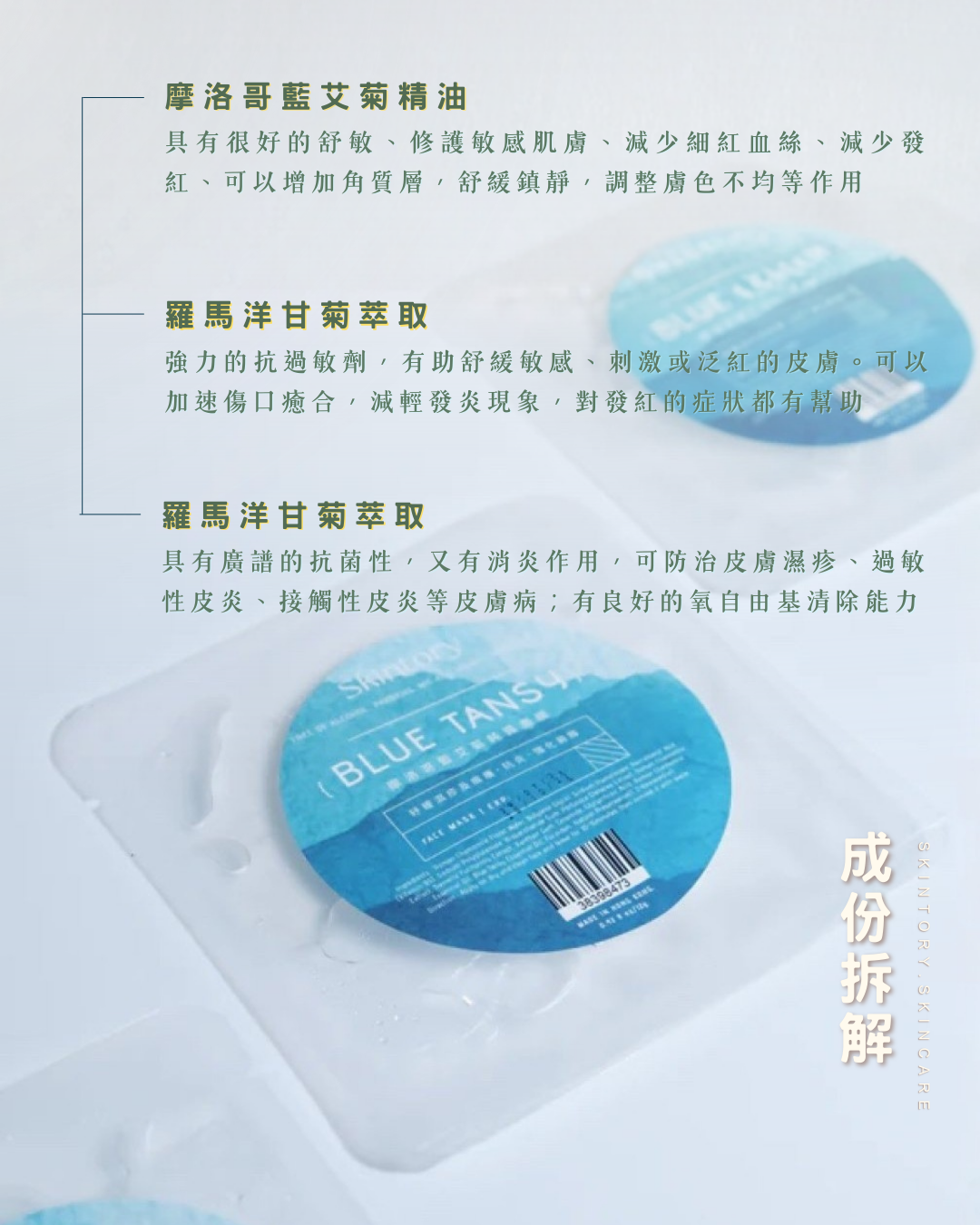 Morocco Blue Tansy Face Mask.12G.Made in HK