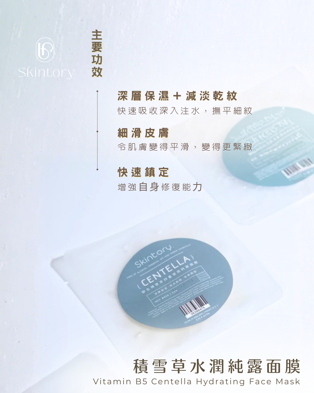 蘊含積雪草4重保濕組合成份,配以維他命B5的黃金三角配方成份,層層滲入肌膚,快速吸收深入注水。